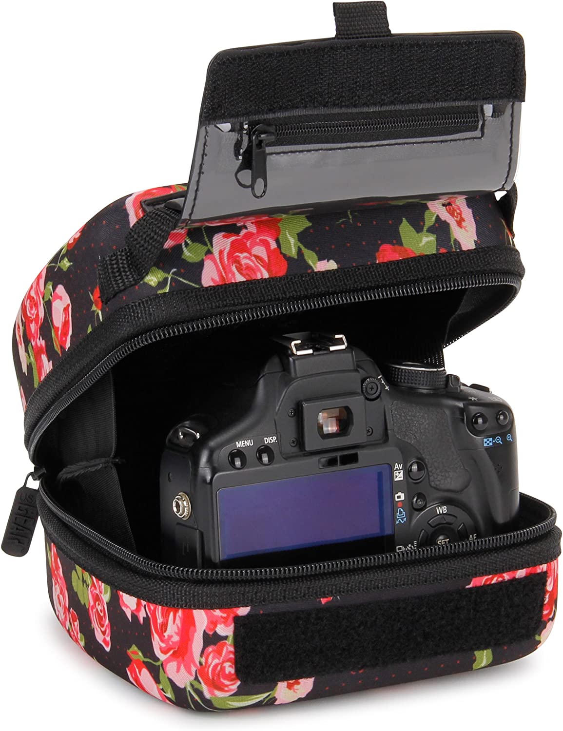 • SECURE AND STRONG belt loop connector or reinforced handle for easy carrying. Use the secure hook & loop flap to allow easy yet secure access to your camera while the case is unzipped