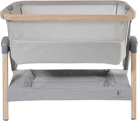 Venice Child California Dreaming Bedside Crib Bassinet w/Travel Case, Bamboo Bassinet Sheet, Removable Bamboo Compressed Cotton Mattress, Height Adjustable, Easy Clean - Grey