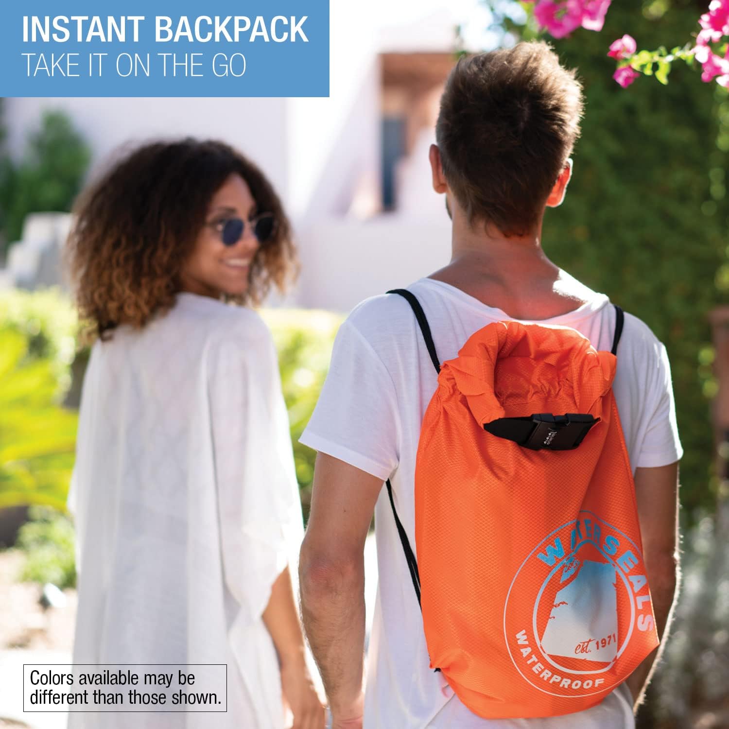 • INTUITIVE FEATURES: Our waterproof drawstring bag was created for your ease. When packing it up, simply roll the top three times, clip to close, and set the lock. Use the clip for attaching it to a chair, poll, or fence.