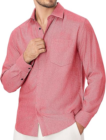 Linen Mens Dress Shirts Long Sleeve Linen Dress Shirts for Men Casual Linen Shirts for Men Button Down Shirt