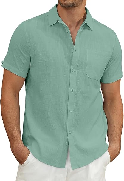 Mens Casual Button Down Shirts Short Sleeve Cotton Dress Shirt