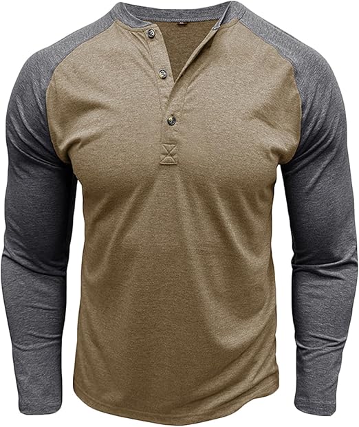 Mens Lightweight Henley Shirts Patchwork Casual Pullover Tees Raglan Long Sleeve Tops Basic Button Workout T Shirts