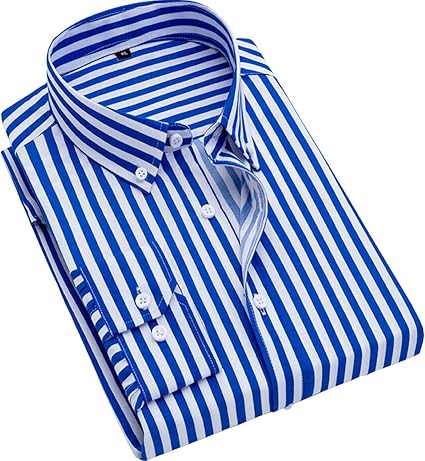 Men's Long Sleeve Dress Shirts Casual Business Vertical Striped Button Down Slim Fit Shirts
