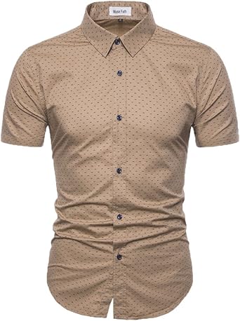MUSE FATH Men's Printed Dress Shirt-Cotton Casual Short Sleeve Regular Fit Shirt