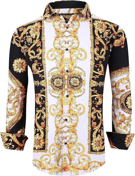 Premiere Mens Designer Fashion Silky Dress Shirt Long Sleeve Casual Shirt Woven Button Up Long Sleeve Button Down Shirt