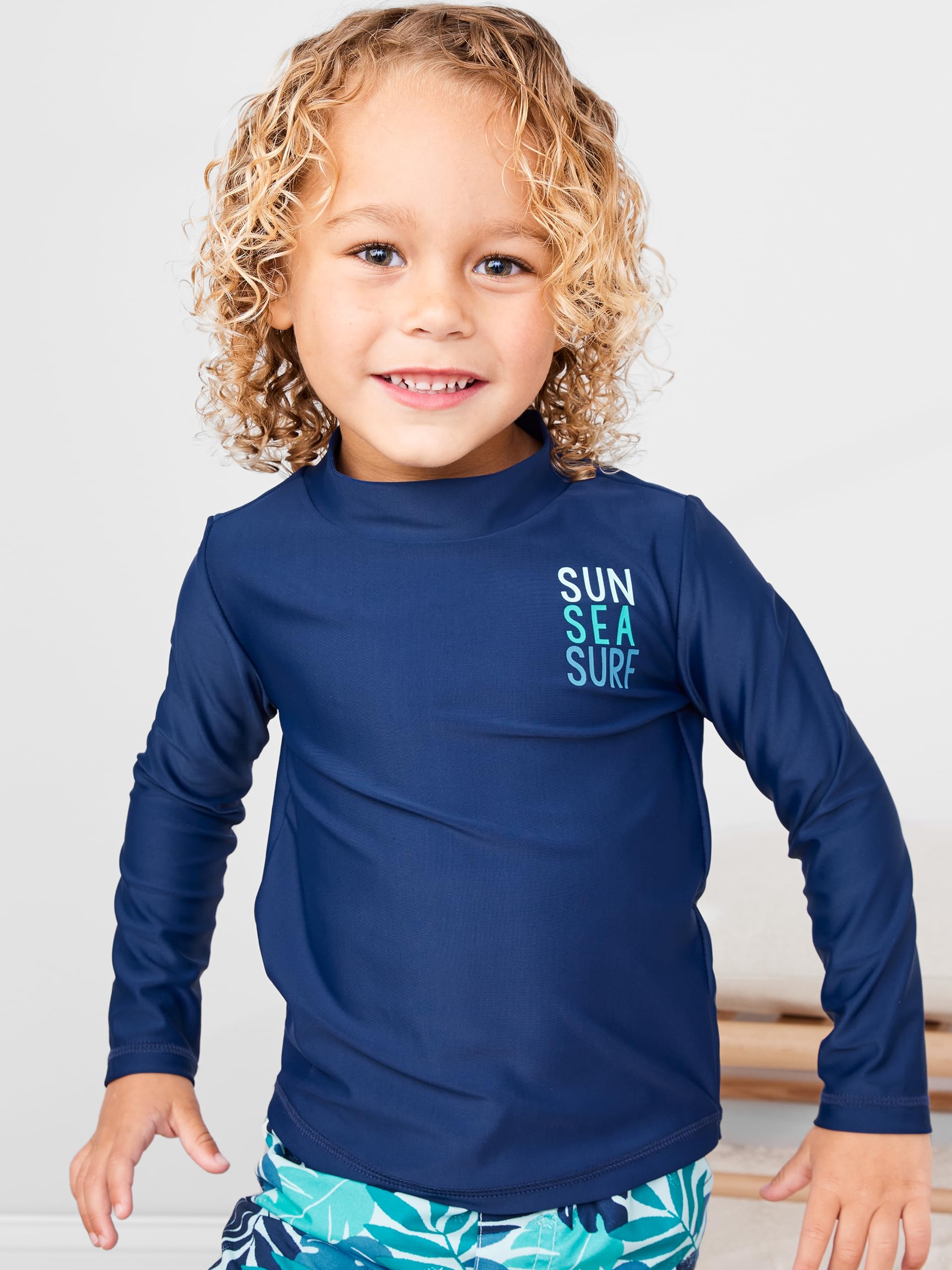 Simple Joys by Carter's Boys' Swimsuit Trunk and Rashguard Set, Navy White Tropical, 2T