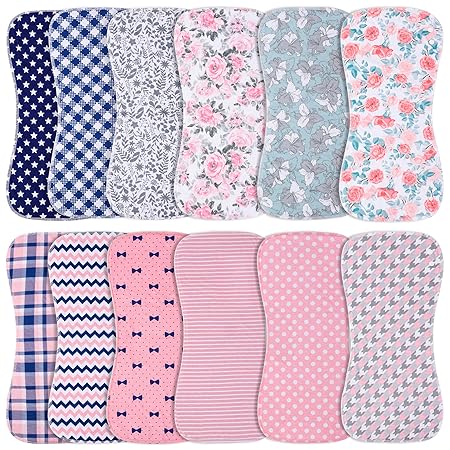 Baby Burp Cloths with Snap Large Size 3 Layers Thicken 100% Cotton Super Absorbent and Soft Baby Spit Up Burping Rags Baby Burp Cloth Set for Girls 12 Pack