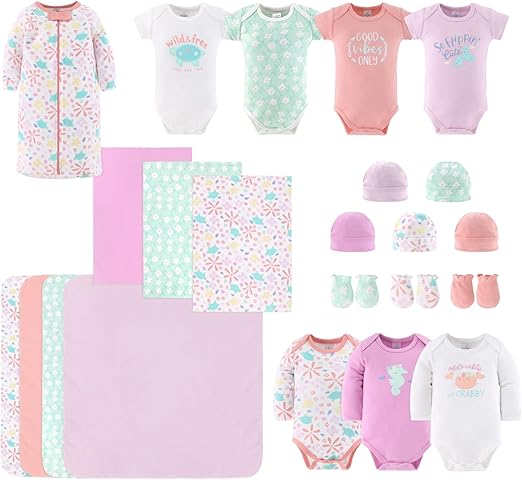 The Peanutshell Baby Layette Set for Girls, New Born Baby Essentials Must Haves, New Baby Girl Gifts 0-3 Months, 23 Pieces