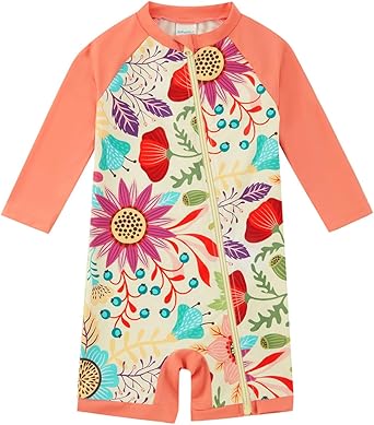Baby Girl One Piece Swimsuit Sunsuit with Full-Length Zipper UPF 50+ Sun Protection Infant Swimwear