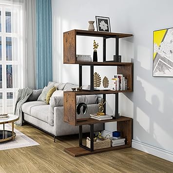 YITAHOME 5 Tiers Bookshelf, Modern S-Shaped Z-Shelf Style Bookshelves, Multifunctional Geometric Bookcase Storage Display Shelf for Living Room Bedroom Home Office, Retro Brown