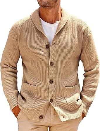 Runcati Mens Shawl Collar Cardigan Sweater Cable Knit Button Down Winter Chunky Sweaters with Pockets