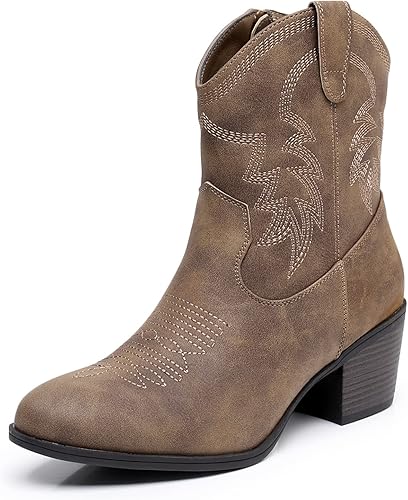 GLOBALWIN Women's Mid Calf The Western Cowboy Boots Fashion Cowgirl Boots For Women Low Heel