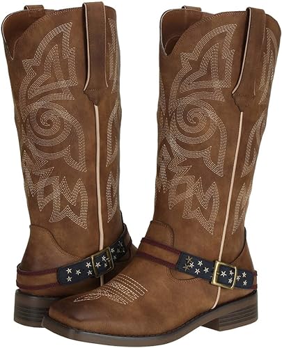Ladies Western Square Toe Cowboy Boots For Women Fashion Embroidered Cowgirl Shoes