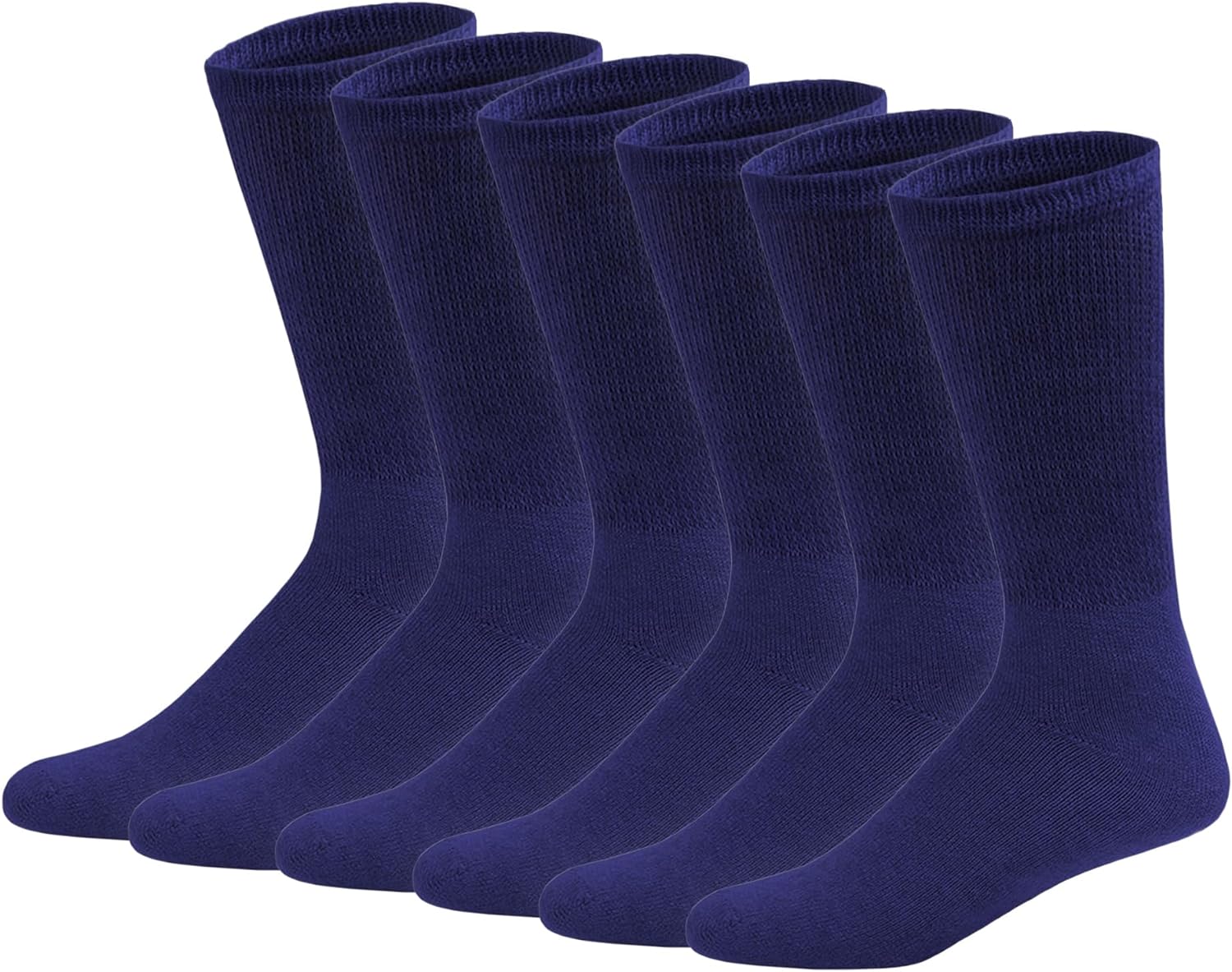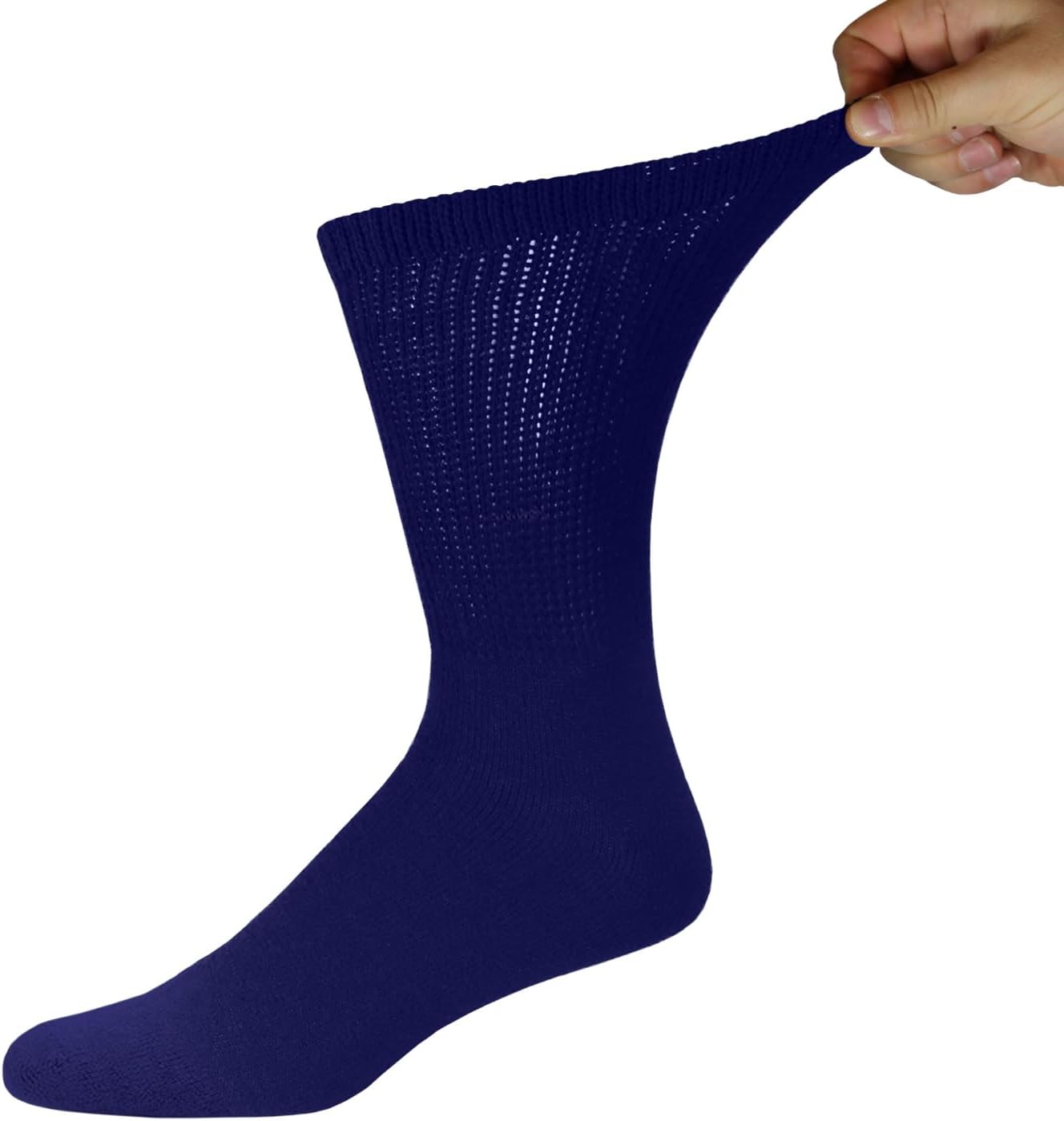 These diabetic socks are made from cotton and promote better circulation! Tops easily stretch over ankles and bounce back into shape. Loose fitting tops stretch over ankle for ease of dressing. Tops bounce back for a comfort fit without binding the leg. Allows for better blood circulation, so important for diabetics and people with circulatory problems or neuropathy.