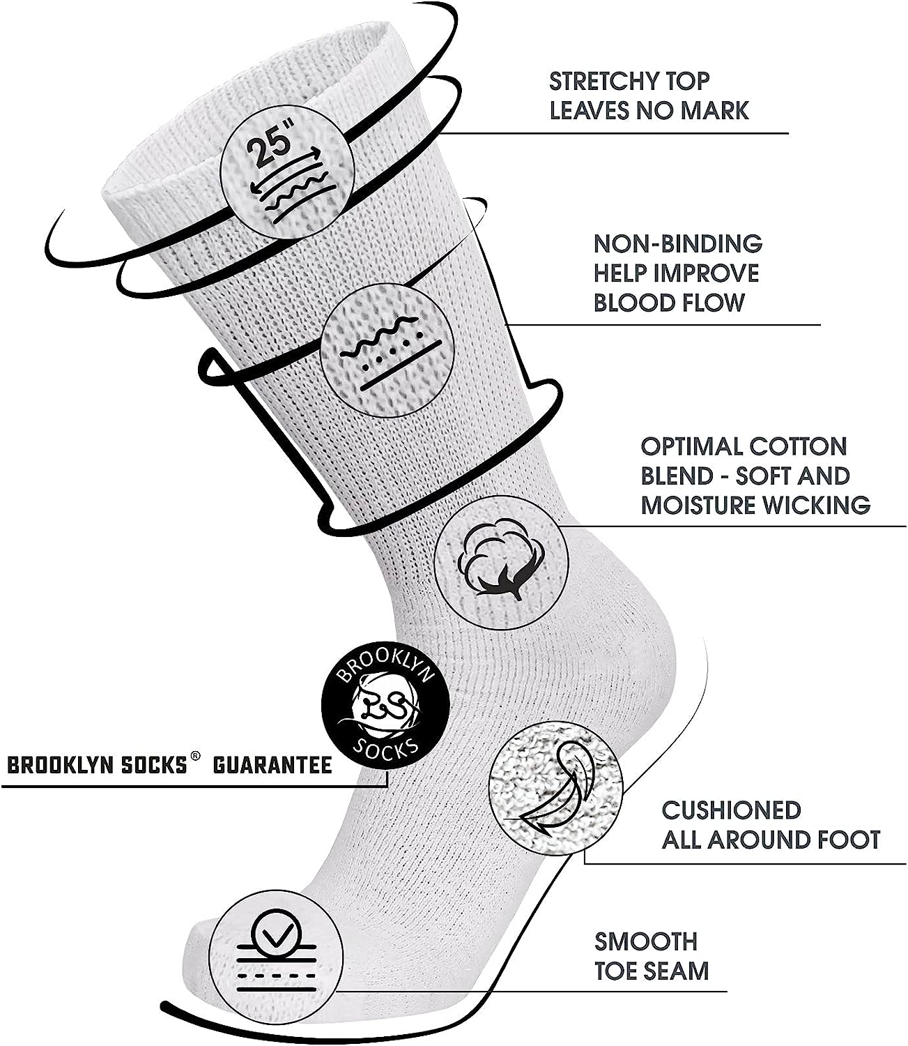 Promotes better circulation. Sock size 10-13 fits Mens shoe size 8-12. Knitted for comfort with Smoother Toe Seam for: Diabetes, Neuropathy Edema.