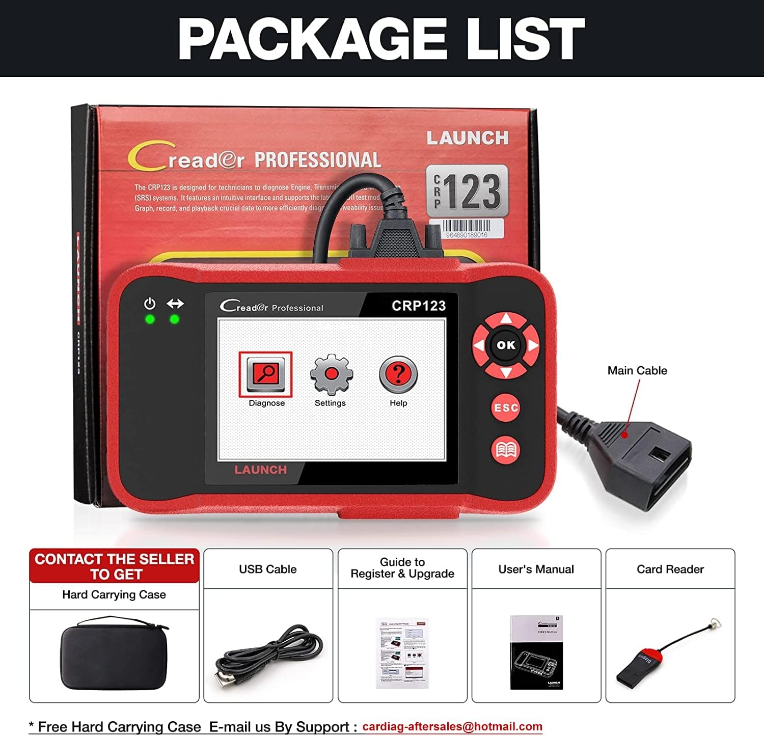 • 🎁【Great Gift Idea For Every Car Owner】Prefect choice for your father, husband, brother or boyfriend. EVERY CAR OWNER WILL NEED IT! It comes with high-quality host with a strong box. Get LAUNCH CRP123 Elite car diagnostic scanner and give your lover a surprise!Any problem,please reach us via ✅ cardiag-aftersales@hotmail.com