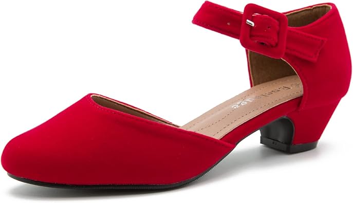 Enelauge Women's Ankle Strap Closed Toe Low Chunky Heel Dress Work Pumps