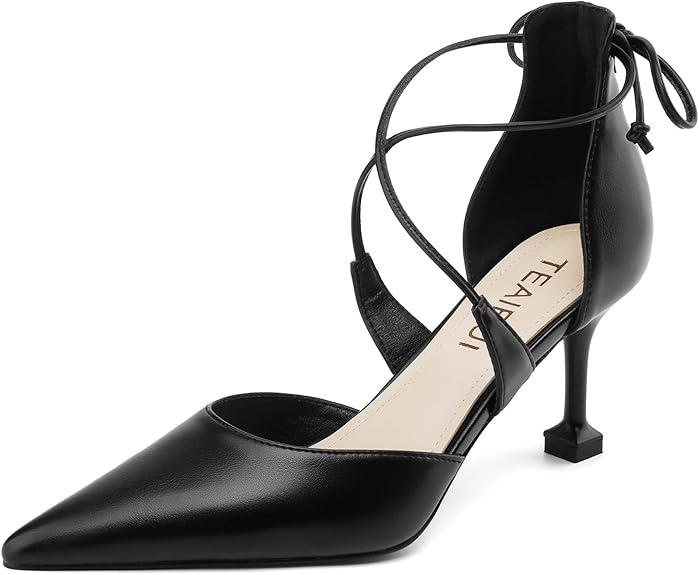Women's Pumps Dressy High Heels Ankle Strap Dress Shoes Strappy Bow Lace Up Kitten Heels Closed Toe Sandals Party Shoes Causal