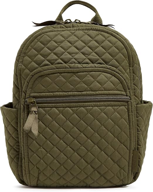 Vera Bradley Women's Cotton Small Backpack, Climbing Ivy Green - Recycled Cotton, One Size