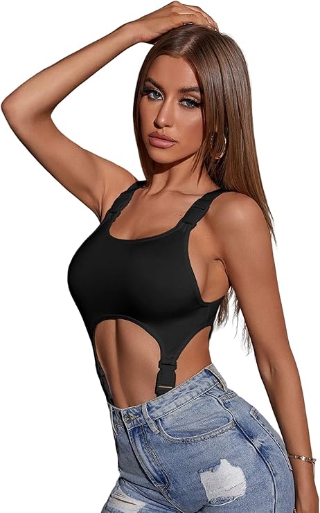 SOLY HUX Women's Sexy High Cut Out Bodysuit Shapewear Skinny Top Camisole Corset Bodysuit