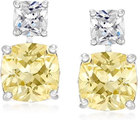 Ross-Simons 10.50 ct. t.w. Yellow and White CZ Drop Earrings in Sterling Silver