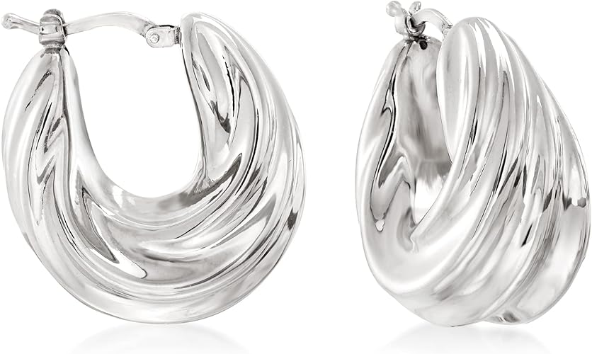 Ross-Simons Italian Sterling Silver Pleated Twist Hoop Earrings