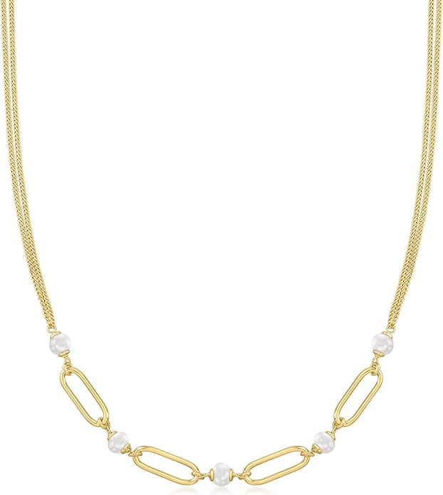 Ross-Simons Italian 5-5.5mm Cultured Pearl and Paper Clip Link Necklace in 18kt Gold Over Sterling