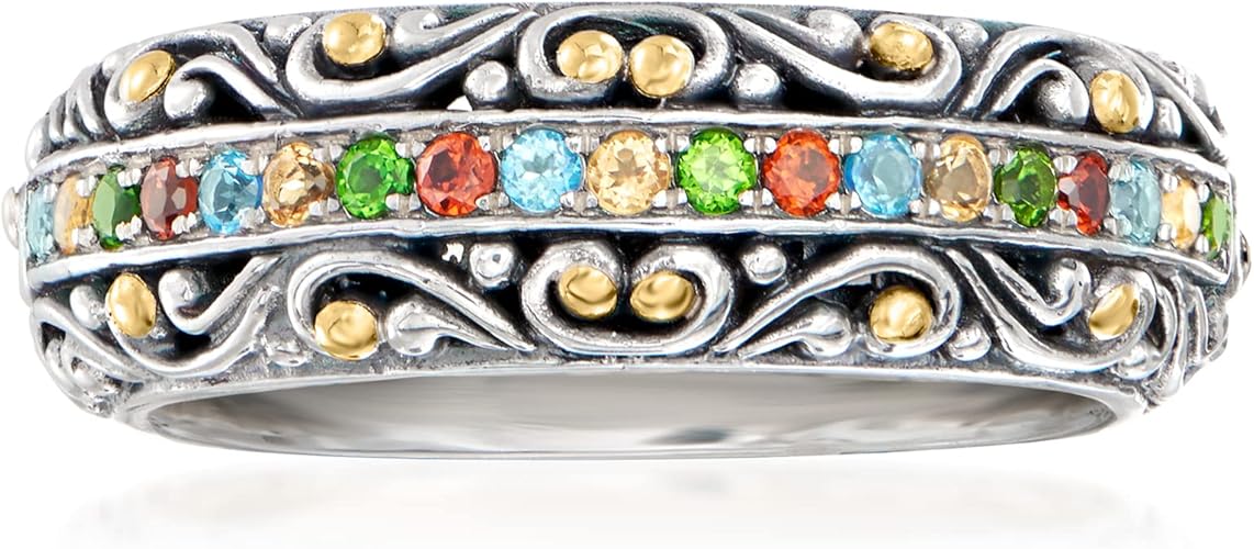 Ross-Simons 0.34 ct. t.w. Multi-Gemstone Bali-Style Ring in Sterling Silver With 18kt Yellow Gold