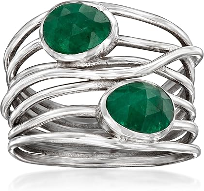 Ross-Simons 1.00 ct. t.w. Emerald Highway Ring in Sterling Silver