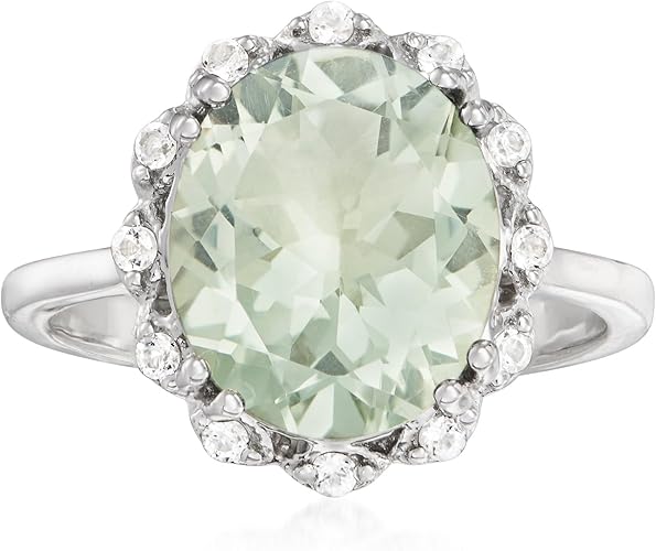 Ross-Simons 4.40 Carat Prasiolite and .20 ct. t.w. White Topaz Ring in Sterling Silver