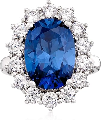 Ross-Simons 5.30 Carat Simulated Sapphire and 1.80 ct. t.w. CZ Ring in Sterling Silver