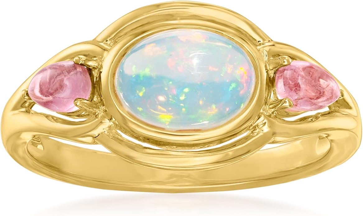Ross-Simons Ethiopian Opal and .40 ct. t.w. Pink Tourmaline Ring in 18kt Gold Over Sterling