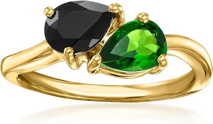 Ross-Simons Onyx and .50 Carat Chrome Diopside Toi Et Moi Ring in 18kt Gold Over Sterling