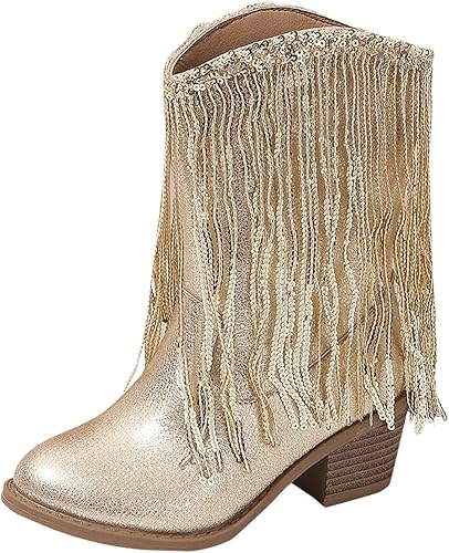 IWIHMIV Girls Leather Cowboy Boots Casual Leather Girl Western Boots Calf High Boots Waterproof Comfortable Ankle Boots