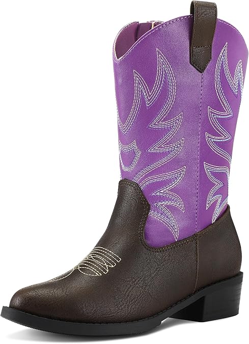K KomForme Cowboy Boots for Girls and Boys Western Mid-Calf Pointed-Toe Cowgirl Boots (Toddler/Little Kid/Big Kid)