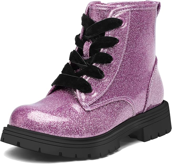 K KomForme Girls Glitter Ankle Boots Lace Up Waterproof Combat Shoes With Side Zipper for Toddler/Little Kid/Big Kid