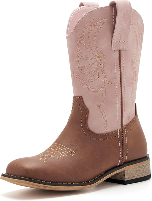 Kids Western Boots for Boys Girls Embroidered Cowgirl Cowboy Boots Square Toe Mid Calf Riding Shoes Little Kid/Big Kid