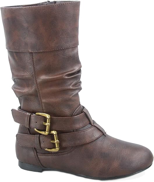 Link Sonny-54K Youth Girl's Fashion Low Heel Zipper Buckle Round Toe Riding Boot
