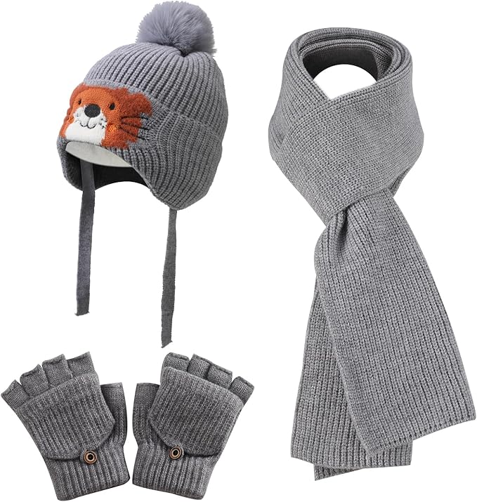 Kids Winter Beanie Hat Gloves Scarf Set, for 1-6 Years Old Toddler Baby Girls Boy Warm Fleece Lining