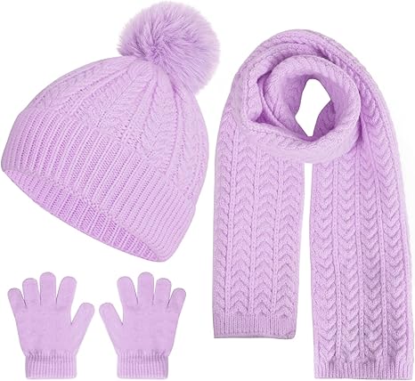 Kids Winter Beanie Hat Scarf Gloves Set, Toddler Winter Cap Knit Neck Warmer Gaiter Mittens for Children 2-8