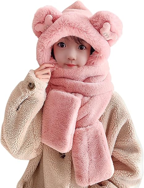 Kids Winter Hat Scarf Mittens 3 in 1 Hat Faux Fur Hat Hooded Scarf Earflap Cap Neck Warmer Ski Hat Hat Scarf Gloves Set