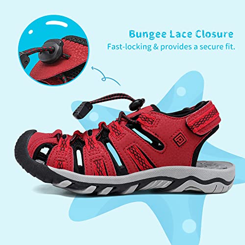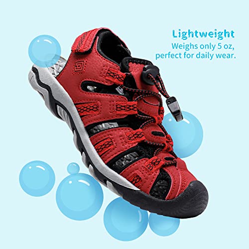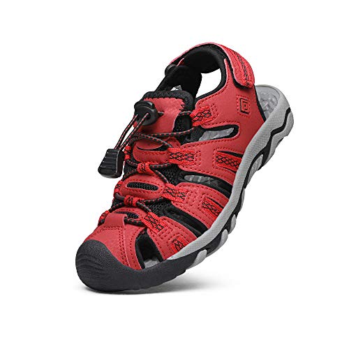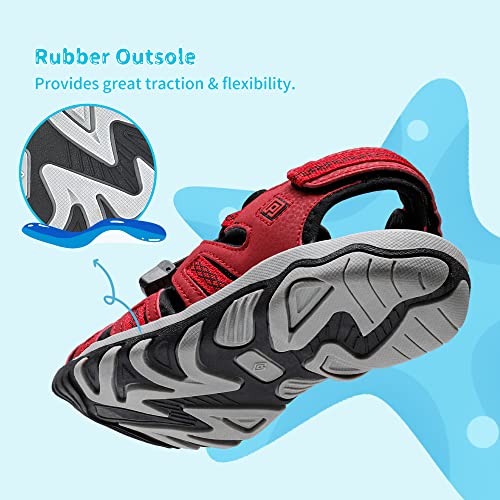 DREAM PAIRS Boys Girls Big Kid 160912-K Red Black Grey Outdoor Summer Sandals Size 4 M US Big Kid
