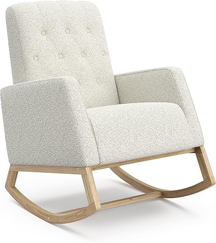 Storkcraft Northern Lights Nursery Rocker (Ivory Boucle) - Upholstered, Button-Tufted Rocking Chair for Nursery, Gentle Rocking Motion, Solid Wood Base