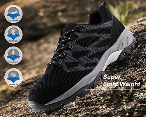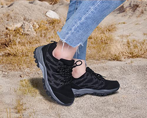 JABASIC Women Outdoor Hiking Shoes Lightweight Knit Sneakers (7,Black/Grey-1)