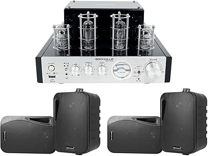 Rockville Bundle: (1) Rockville BluTube 70w Tube Amplifier/Home Theater Stereo Receiver w/Bluetooth Bundle with (4) Rockville HP4S-8 BK Outdoor/Indoor 8-Ohm Wall Mount Home Speakers (5 Items)