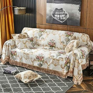 Amidoudou European Luxury Couch Cover for Loveseat Cushion Couch, Sectionals L Shaped Couch, Jacquard Chenille Sofa Cover Slipcover with Tassels (Beige, Large 71 "x102)