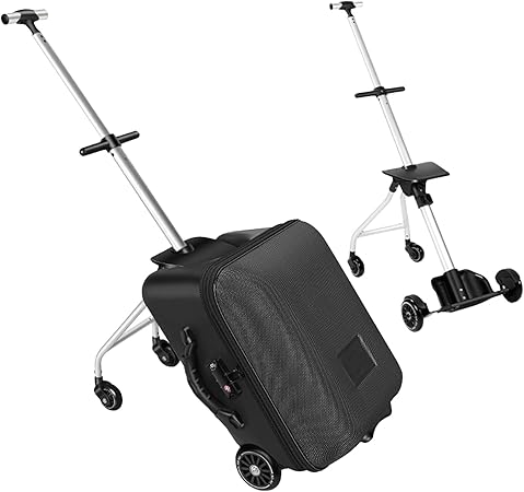 Children's Ride-On Suitcase, Ride on Suitcase for Kids, Kids Luggage Set, Fashion Travel Student Trolley Boarding Toy Box, 2-in-1 Case & Baby Stroller, Black