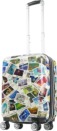 FUL Disney 22 Inch Carry On Luggage, Disney Stamps Hardshell Rolling Suitcase with Spinner Wheels, Multi