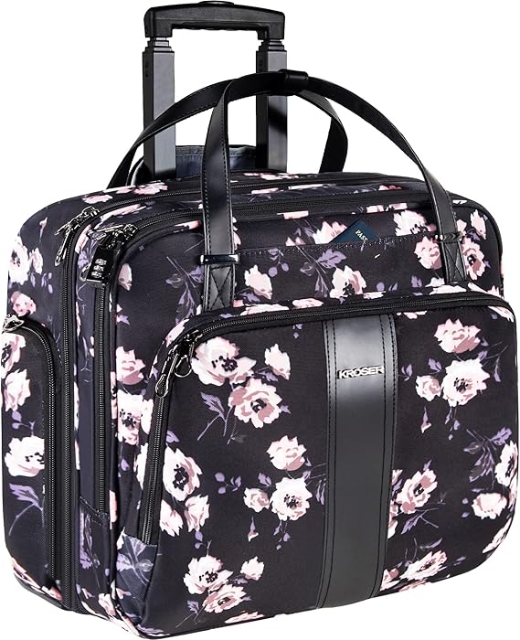 KROSER Rolling Laptop Bag Premium Rolling Laptop Briefcase Fits Up to 15.6 Inch Laptop Overnight Rolling Computer Bag with RFID Pockets for Travel/Business/Women