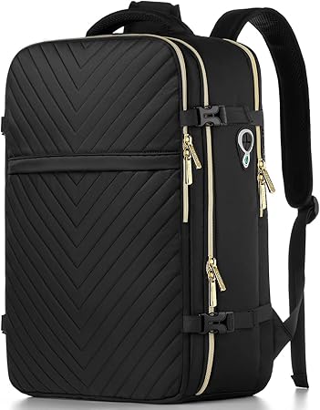 Large Carry On Travel Backpack - Flight Approved Waterproof Anti-Theft Luggage Daypack for Women Men Fit 17 Inch Laptop Business Weekender Overnight Backpack College Bag Personal Item Size Black